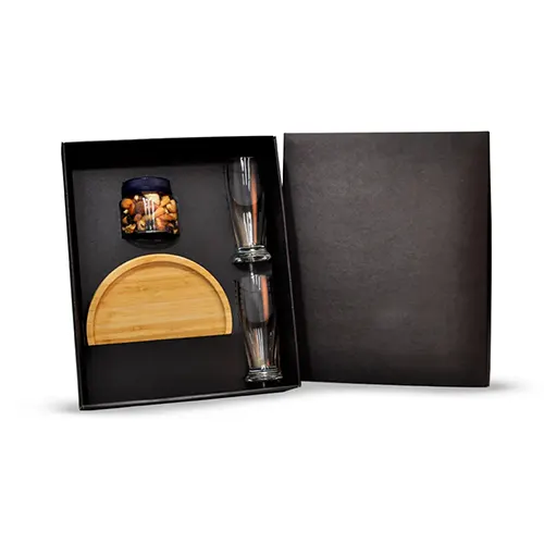RECOMENDAÇÃO: Uma gravação a Laser na petisqueira, nos copos e na tampa da caixa.