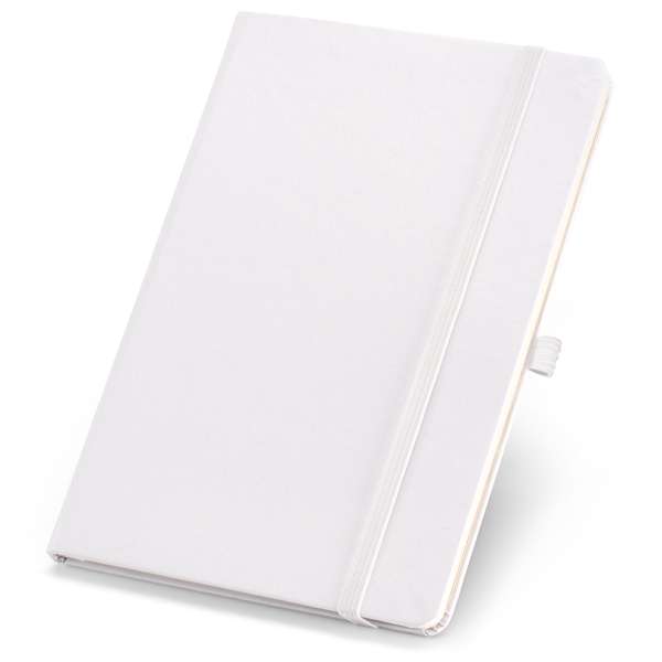 Caderno Capa Dura. Com porta esferográfica, bolso interior e 80 folhas não pautadas cor marfim. 97 x 145 mm
