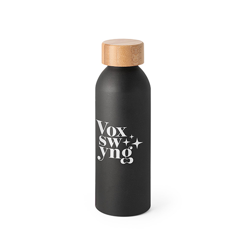 Squeeze de alumínio com acabamento mate e tampa em bambu. Capacidade até 550 ml. Food grade. Caixa branca 94656 vendida opcionalmente. ø65 x 197 mm